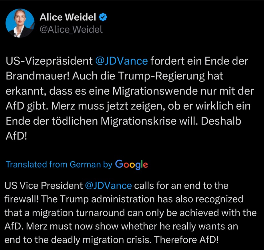 Weidel from the far-right AfD and Putin from the rotten Kremlin.