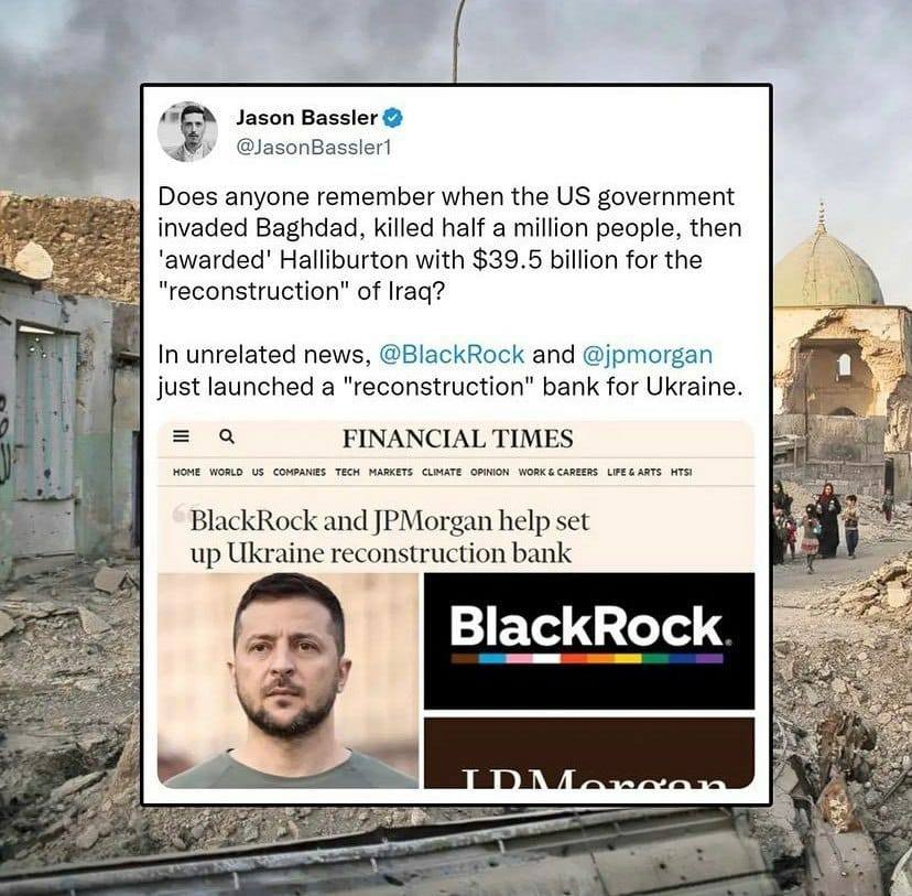 When I first heard of BlackRock setting up a fund to rebuild Ukraine, I thought to myself : “Who would be so stupid to invest in this?” But I guess the belief in Ukraine’s victory was strong. I can’t blame BlackRock for being naive or for trying to fleece gullible NPCs out of their money.
