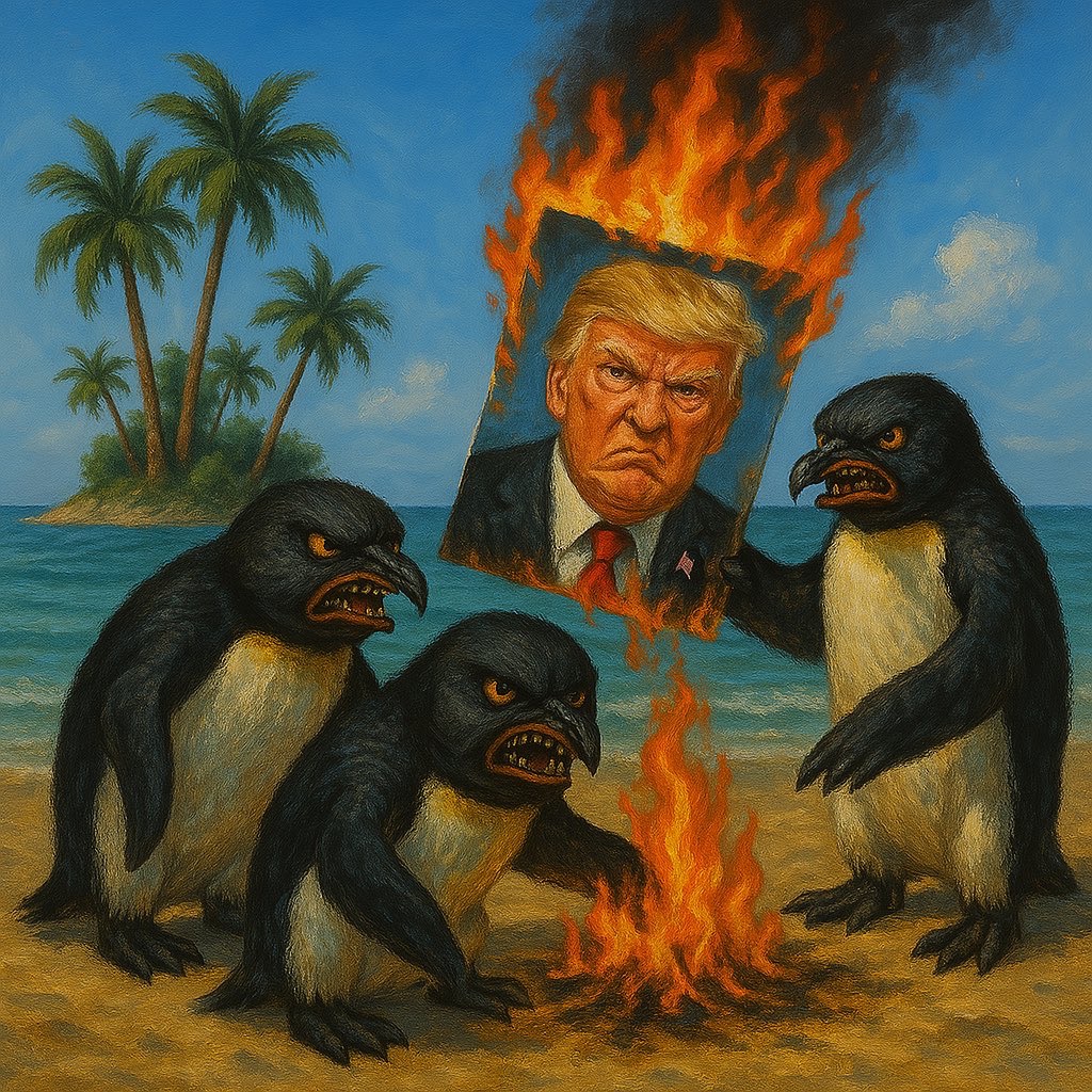 Evil motherfucker Trump slapped tariffs on some remote Australian territory that is uninhabited and serves as a nesting ground for penguins. But motherfuckers don’t know…