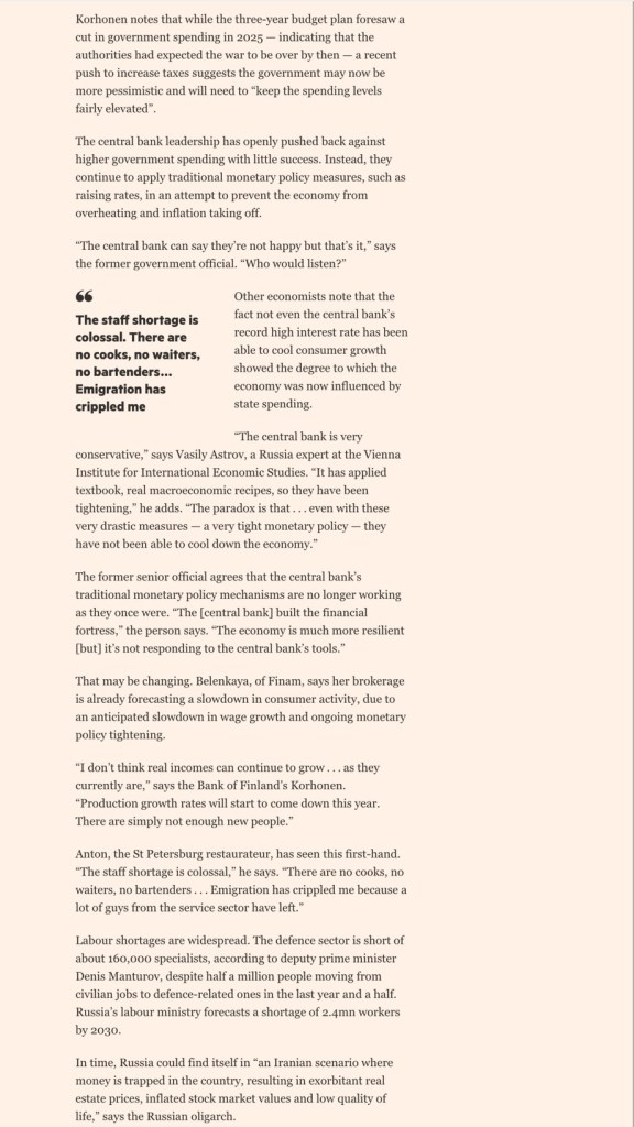This could be dismissed as war economy that will be over once the hot war in Ukraine is over but much of this has to do with the wider economic war the West is waging on Russia. This is the actual battlefield and it is world wide. The Third World War will be largely an economic war of the Rest against the West. Nobody wants to fight a hot war, today’s war is a war of embargoes, blockades, sabotages, covert operations. It is fought through banks, media, NGOs, secret services, and in the worst case violent proxy idiots like Ukraine or the Islamists.