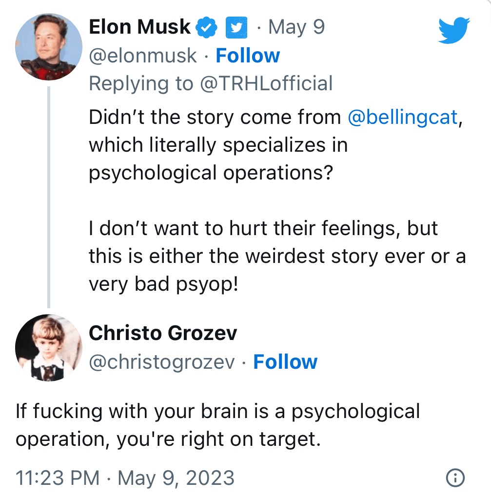 Elon Musk was not happy about their report, which the Permogi blog says contained an information that the shooter had an account on the Russian social media site Odnoklassniki.