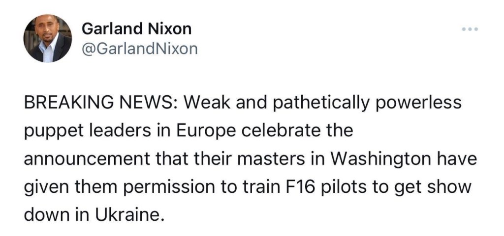 The F16 is like a carrot that the West dangles in front of the Ukrainian donkeys. It will probably never be transferred to Ukraine. And even if they finally make it to Ukraine, what do you reckon their impact will be? The same as Javelin? The same as Bayraktar? The same as HIMARS?