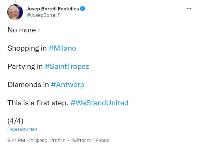 UPD: Mikhaïl Podolyak, Zelensky’s adviser said that stopping weapons deliveries would cause the conflict to escalate and would spread to other countries, terror attacks would also increase. “You will not eat your croissants in restaurants in peace.” -said Podolyak.