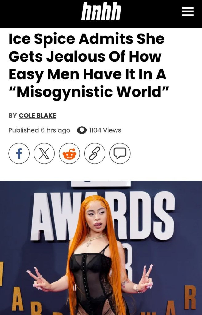 Ice Spice sees the couple of Tyrones that she wants to shag with, and thinks these negros have it easy. A successful man would surpass any woman, this ain’t misogyny, Mother Nature made women average. Also, most men out there are losers and nobody gives a fuck about them…