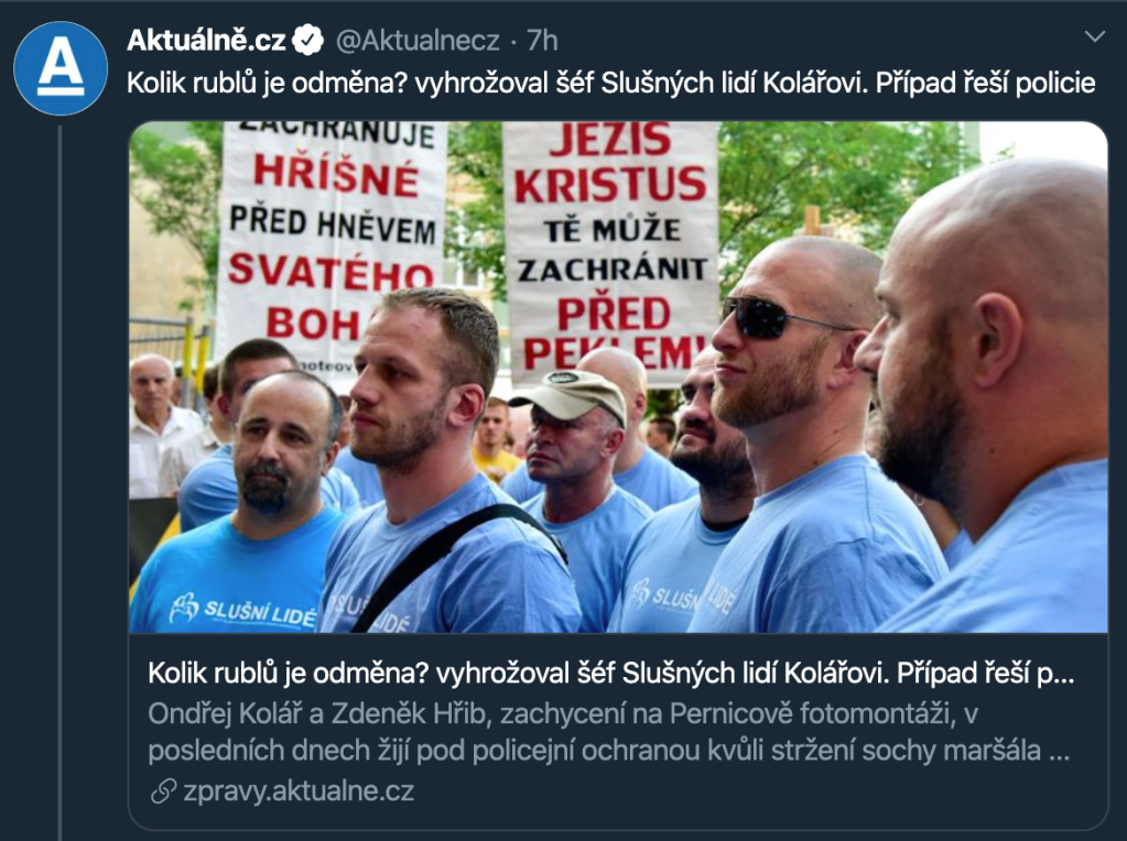 “Do you know the size of the reward in rubles?” -wrote on a social network, the head of the movement, Slušní lidé (polite people) and included a picture of Prague politicians, who are facing threats because of the removal of the Konev statue. All three are under poĺice protection.