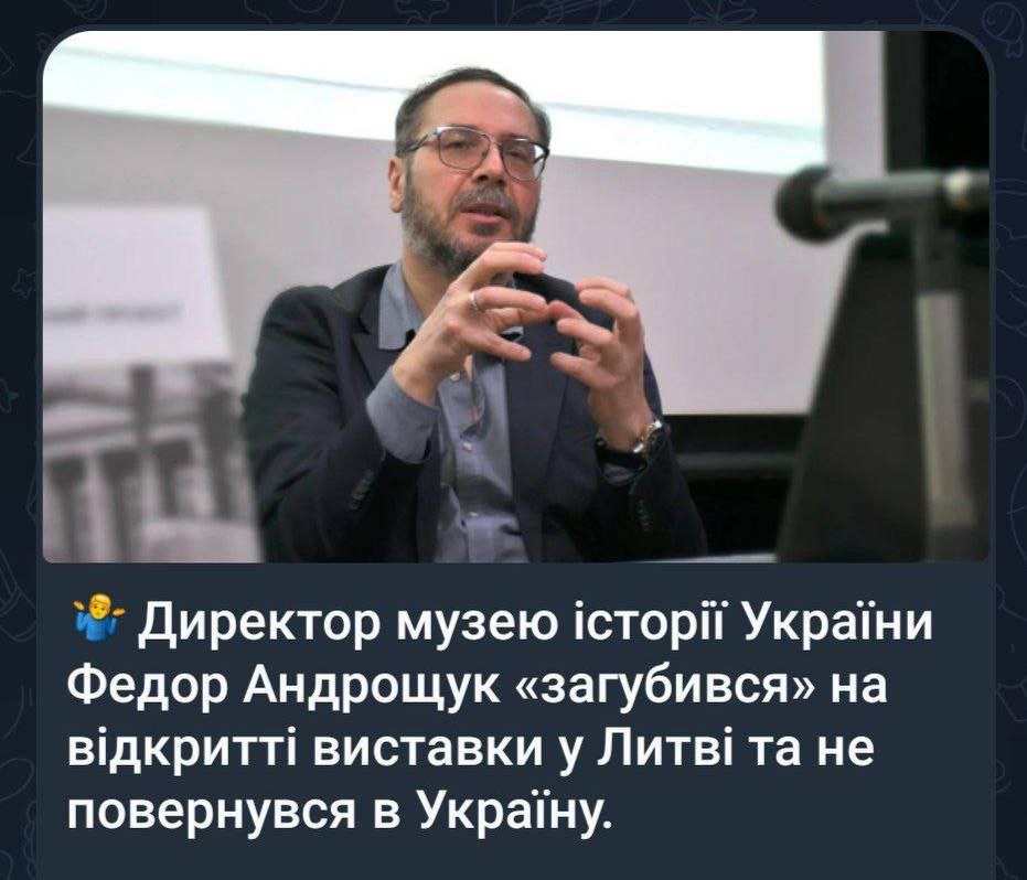 The director of the Museum of Ukrainian History, Fedor Androshchuk has gone missing (literally in the text: “was lost”) during the opening of an exposition in Lithuania and did not return back to Ukraine.