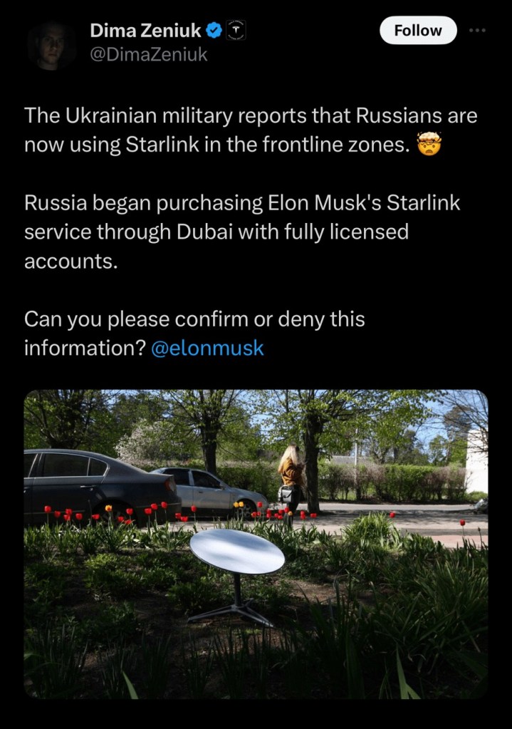 It would have been better if Russia had its own, encrypted communication network and a constellation of communication satellites in the orbit. But I guess this is cheaper…